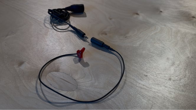 Composée de deux mini-jacks mâle et femelle, entre le micro et la coque sur mesure.